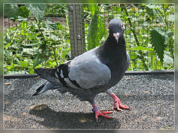 Sammy wurde flugunfähig in Oer-Erkenschwick gefunden. Schnell war leider klar, dass er PMV hat, eine schlimme Viruserkrankung, die für die meisten Tauben tödlich endet. Der Virus befällt das Nervensystem der Tiere, sie vergessen einfach alles, auch wie man frisst und die Scheu vor Menschen. Später kommen schwere neurologische Probleme hinzu. Zudem sind die Tiere anfällig für alle möglichen Sekundärerkrankungen. Sammy hatte großes Glück rechtzeitig gefunden zu werden und hat es geschafft. Er ist sogar wieder völlig symptomfrei geworden, obwohl er wirklich sehr schlimme neurologische Ausfälle hatte. Wir haben ihn dann versuchsweise in den Freiflug vermittelt, aber das war dann doch zu viel Stress für ihn. Er fiel einfach mit gelähmten Flügeln vom Himmel. Da unter Stress die Symptome ein Leben lang wieder auftreten können, ist er dann in unsere Voliere eingezogen und kommt da hervorragend klar. | |||