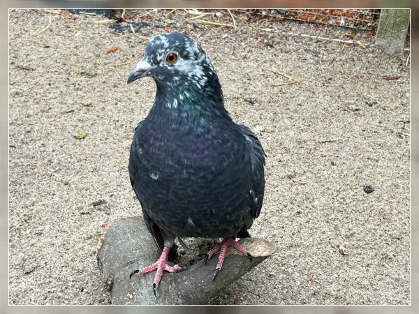 Abbey wurd in Datteln am Marktplatz eingesammelt, weil sie sich beim Fressen im Kreis drehte - Verdacht auf PMV....Sie war dann 6 Wochen bei uns auf einer Pflegestelle (so lange ist PMV hoch ansteckend für Tauben) und zeigte in der Zeit nie irgendwelche Symptome, sodass wir sehr unsicher waren, ob wir nicht einfach nur etwas überempfindlich reagiert haben beim Einsammeln. Wir entschieden uns, sie wieder raus zu lassen... Am Abend zuvor wunderten wir uns, dass diese Taube keine Anstalten machte sich weg zu bewegen beim Säubern der Box, sie blieb einfach da sitzen, wo sie absgesetzt wurde. Wir testeten dann, ob sie fliegt, und sie fiel einfach wie ein Stein aufs Sofa - okay doch PMV. Sie zog dann in unsere Voliere und fing dort an, plötzlich extreme Symptome zu zeigen. Ihr war das alles zu stressig, sie lag nur kopfüber in der Ecke. Also holten wir sie wieder raus. Auf der Pflegestelle war sie nach einigen Tagen wieder unauffällig und wir entschieden uns, sie erst nach dem Umzug der Voliere wieder reinzusetzen, leider passierte das Gleiche wieder - mit dem Stress so vieler Tauben kommt sie einfach nicht klar. Aalso haben wir sie wieder reingeholt.... Aktuell lebt sie auf einer Pflegestelle und hat dort ihre große Liebe gefunden. Sie interessierte sich bisher für keine andere Taube, egal wie viel Mühe sich die Kerle gaben. Wie es mit ihr weitergehen soll, wissen wir noch nicht so recht.... Ihr Partner ist voll flugfähig und top fit, allerdings auf einem Auge blind. Abbey wäre eigentlich ein Fall für die Schwerbehindertenvoliere, er aber nicht. Zurzeit sind beide absolut zufrieden mit dem Freiflug im Taubenzimmer und einem weiteren Taubenpaar als Kumpels mit dabei. Eine Dauerlösung ist das so aber natürlich nicht... Im Idealfall finden wir jemanden, der sich eine Voliere in den Garten stellt und nur wenige Tauben von uns dort versorgt, wir wünschen uns das für Abbey sehr. | |||