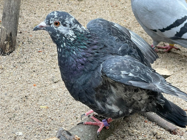 Sammy wurde flugunfähig in Oer-Erkenschwick gefunden. Schnell war leider klar, dass er PMV hat, eine schlimme Viruserkrankung, die für die meisten Tauben tödlich endet. Der Virus befällt das Nervensystem der Tiere, sie vergessen einfach alles, auch wie man frisst und die Scheu vor Menschen. Später kommen schwere neurologische Probleme hinzu. Zudem sind die Tiere anfällig für alle möglichen Sekundärerkrankungen. Sammy hatte großes Glück rechtzeitig gefunden zu werden und hat es geschafft. Er ist sogar wieder völlig symptomfrei geworden, obwohl er wirklich sehr schlimme neurologische Ausfälle hatte. Wir haben ihn dann versuchsweise in den Freiflug vermittelt, aber das war dann doch zu viel Stress für ihn. Er fiel einfach mit gelähmten Flügeln vom Himmel. Da unter Stress die Symptome ein Leben lang wieder auftreten können, ist er dann in unsere Voliere eingezogen und kommt da hervorragend klar. | |||